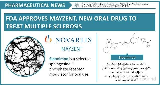 美国FDA于2019年3月26日批准了Mayzent(siponimod,司珀莫德)用于治疗复发性多发性硬化(MS)成人患者,包括临床孤立综合征、复发-缓解型MS和活动性继发进展型MS